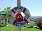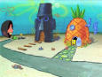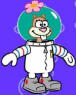 This is Sandy Cheeks. She is a squarle, that lives in a bubble under water. She & Sponge bob are good friends. They practice KA-RA-TE (karate) together.